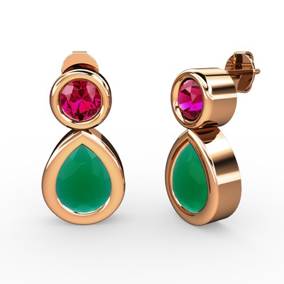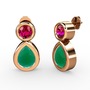 Kök zümrüt ve rodolit garnet 14 ayar rose altın küpe