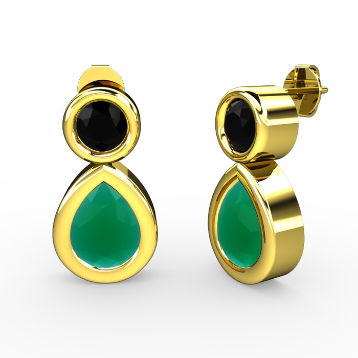 Kök zümrüt ve siyah zirkon 925 ayar altın kaplama gümüş küpe