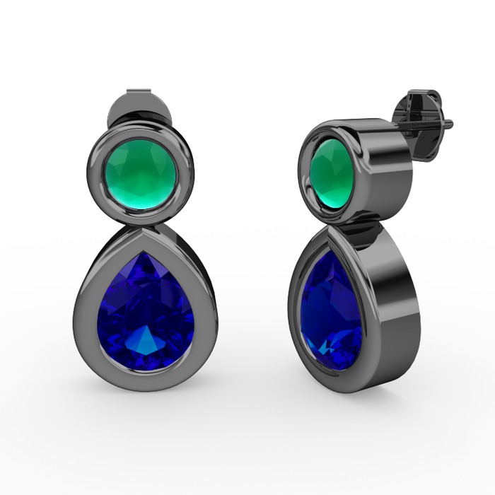 Lab safir ve kök zümrüt 925 ayar siyah rodyum kaplama gümüş küpe