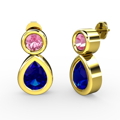 Lab safir ve pembe kuvars 18 ayar altın küpe