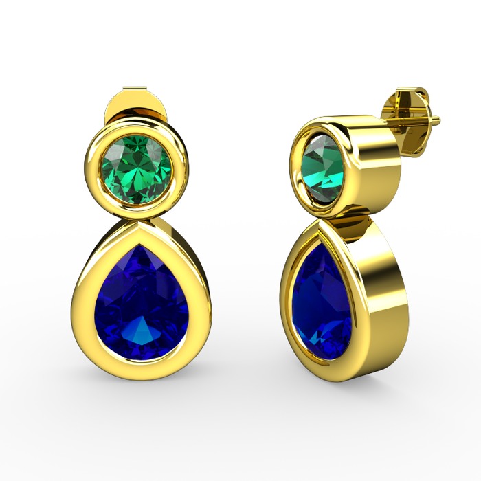 Lab safir ve yeşil kuvars 8 ayar altın küpe