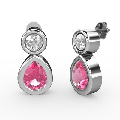 Pembe kuvars ve pırlanta 925 ayar gümüş küpe (1 karat)