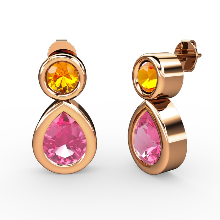 Pembe kuvars ve sitrin 925 ayar rose altın kaplama gümüş küpe
