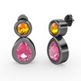 Pembe kuvars ve sitrin 925 ayar siyah rodyum kaplama gümüş küpe