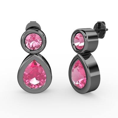 Pembe kuvars 925 ayar siyah rodyum kaplama gümüş küpe