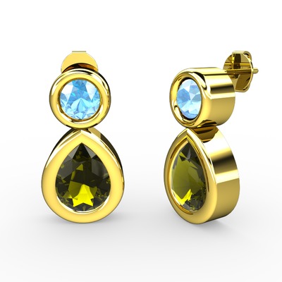 Peridot ve akuamarin 18 ayar altın küpe