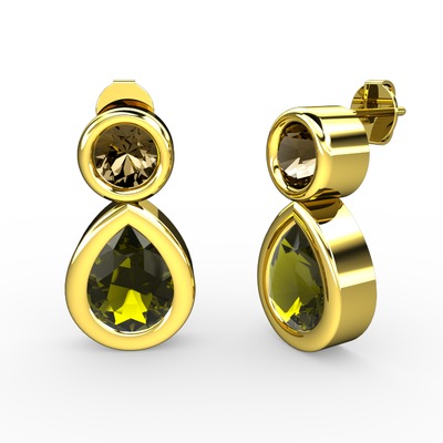 Peridot ve dumanlı kuvars 14 ayar altın küpe