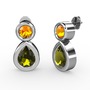 Peridot ve sitrin 14 ayar beyaz altın küpe