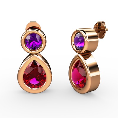 Rodolit garnet ve ametist 8 ayar rose altın küpe