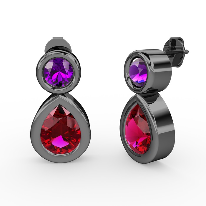 Rodolit garnet ve ametist 925 ayar siyah rodyum kaplama gümüş küpe