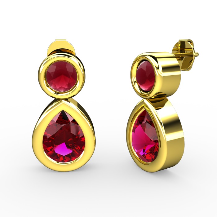 Rodolit garnet ve kök yakut 18 ayar altın küpe