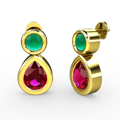 Rodolit garnet ve kök zümrüt 8 ayar altın küpe