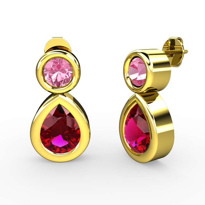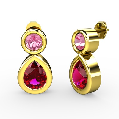 Rodolit garnet ve pembe kuvars 18 ayar altın küpe