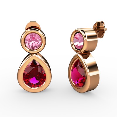 Rodolit garnet ve pembe kuvars 8 ayar rose altın küpe