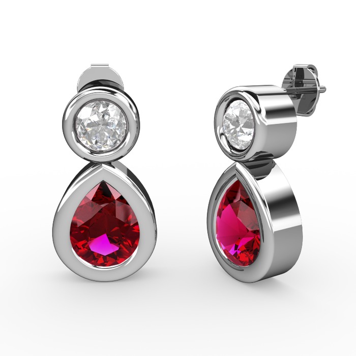 Rodolit garnet ve pırlanta 925 ayar gümüş küpe (1 karat)
