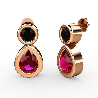 Rodolit garnet ve siyah zirkon 18 ayar rose altın küpe