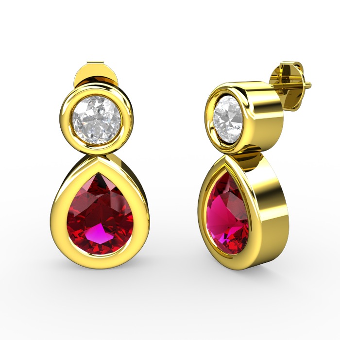 Rodolit garnet ve swarovski 14 ayar altın küpe