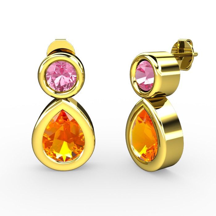 Sitrin ve pembe kuvars 14 ayar altın küpe