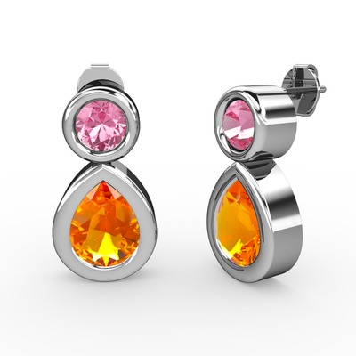 Sitrin ve pembe kuvars 8 ayar beyaz altın küpe