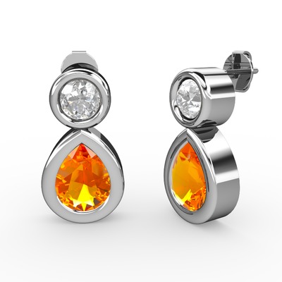 Sitrin ve pırlanta 18 ayar beyaz altın küpe (1 karat)