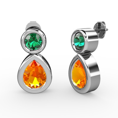 Sitrin ve yeşil kuvars 8 ayar beyaz altın küpe