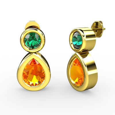 Sitrin ve yeşil kuvars 925 ayar altın kaplama gümüş küpe