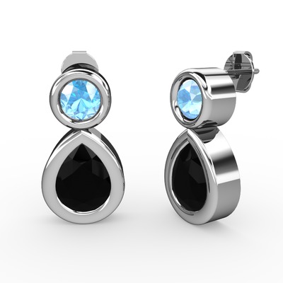 Siyah zirkon ve akuamarin 925 ayar gümüş küpe