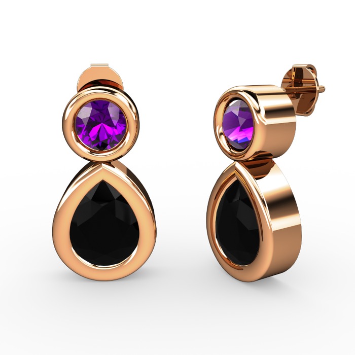 Siyah zirkon ve ametist 925 ayar rose altın kaplama gümüş küpe
