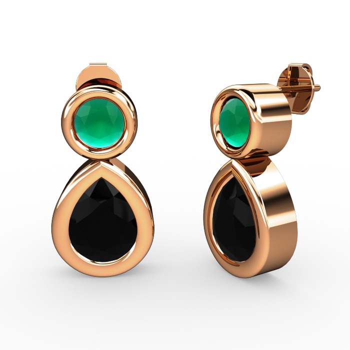Siyah zirkon ve kök zümrüt 14 ayar rose altın küpe