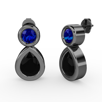 Siyah zirkon ve lab safir 925 ayar siyah rodyum kaplama gümüş küpe