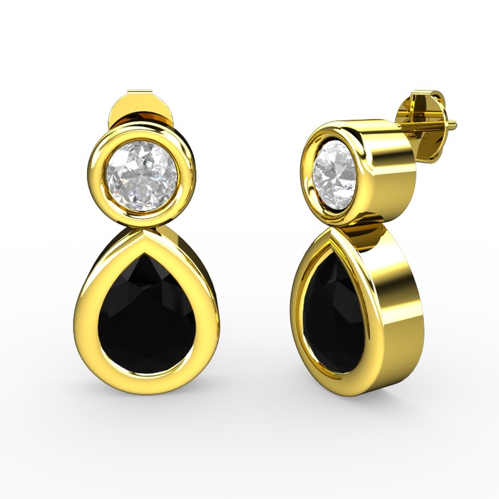 Siyah zirkon ve pırlanta 14 ayar altın küpe (1 karat)