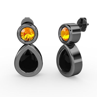 Siyah zirkon ve sitrin 925 ayar siyah rodyum kaplama gümüş küpe