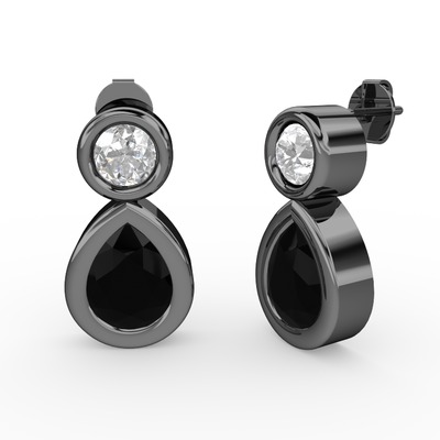 Siyah zirkon ve swarovski 925 ayar siyah rodyum kaplama gümüş küpe