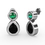 Siyah zirkon ve yeşil kuvars 14 ayar beyaz altın küpe
