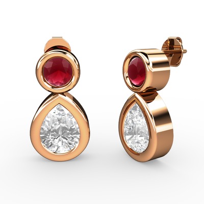 Swarovski ve kök yakut 18 ayar rose altın küpe