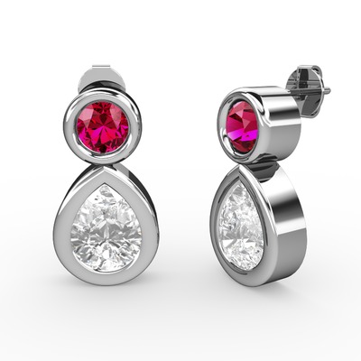 Swarovski ve rodolit garnet 8 ayar beyaz altın küpe