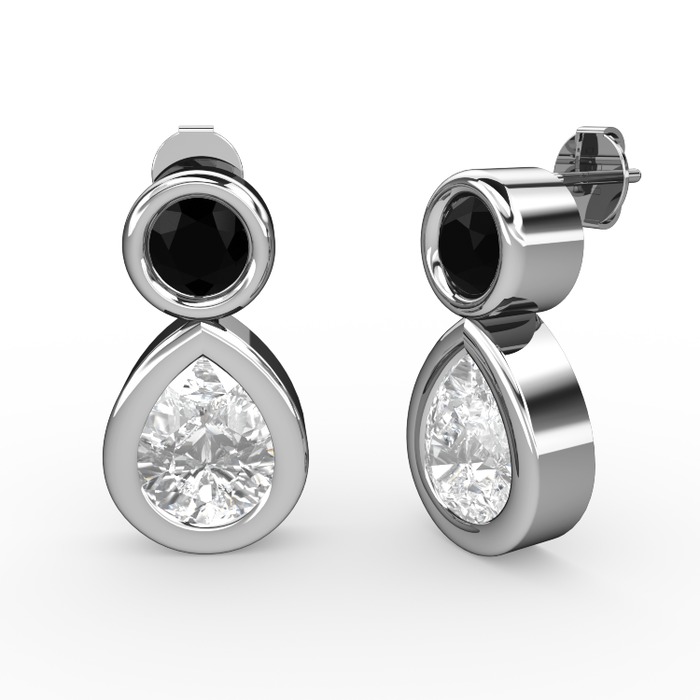 Swarovski ve siyah zirkon 14 ayar beyaz altın küpe