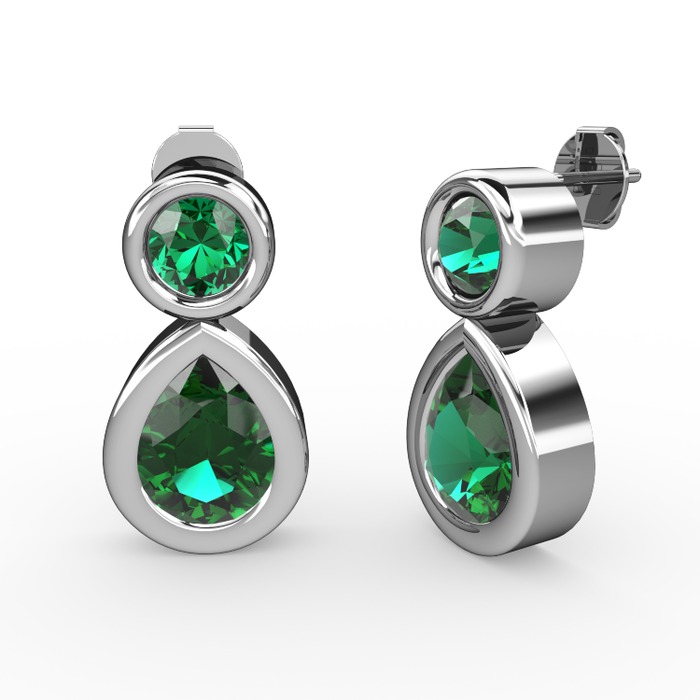 Yeşil kuvars 18 ayar beyaz altın küpe