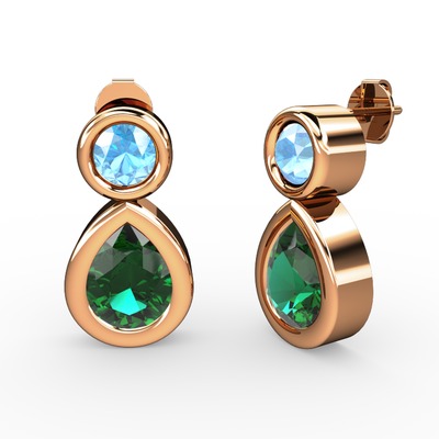 Yeşil kuvars ve akuamarin 925 ayar rose altın kaplama gümüş küpe