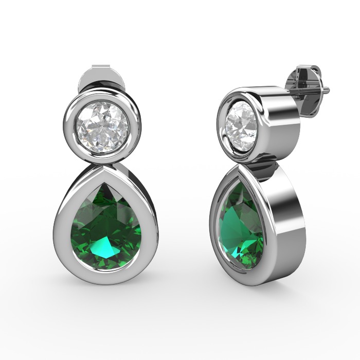 Yeşil kuvars ve beyaz zirkon 925 ayar gümüş küpe