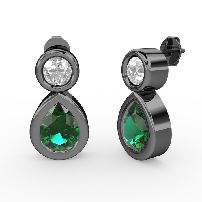 Yeşil kuvars ve beyaz zirkon 925 ayar siyah rodyum kaplama gümüş küpe