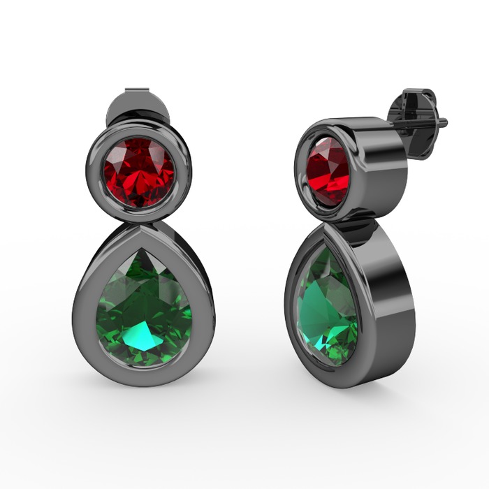 Yeşil kuvars ve garnet 925 ayar siyah rodyum kaplama gümüş küpe