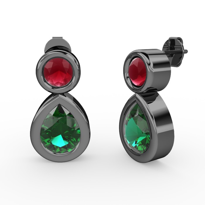 Yeşil kuvars ve kök yakut 925 ayar siyah rodyum kaplama gümüş küpe