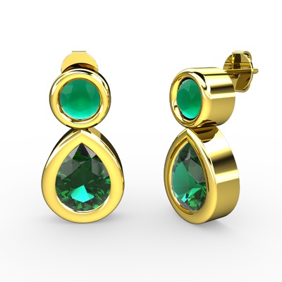 Yeşil kuvars ve kök zümrüt 925 ayar altın kaplama gümüş küpe
