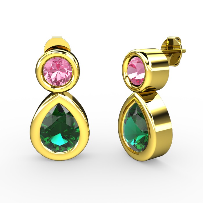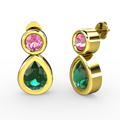 Yeşil kuvars ve pembe kuvars 14 ayar altın küpe