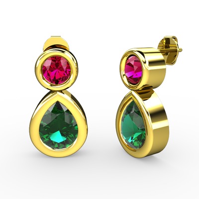 Yeşil kuvars ve rodolit garnet 8 ayar altın küpe