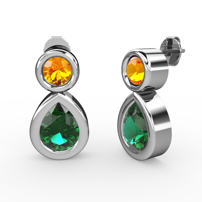 Yeşil kuvars ve sitrin 925 ayar gümüş küpe