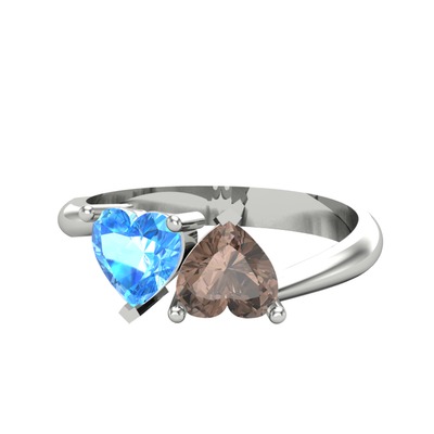 Akuamarin ve dumanlı kuvars 14 ayar beyaz altın yüzük