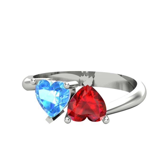 Akuamarin ve garnet 8 ayar beyaz altın yüzük