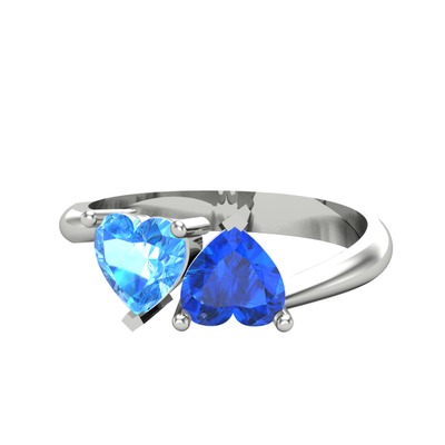 Akuamarin ve lab safir 14 ayar beyaz altın yüzük